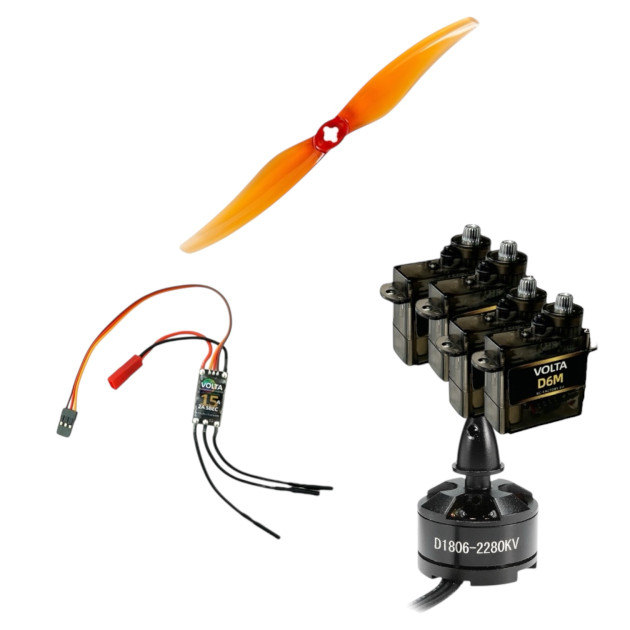 This combination provides ideal power and control for indoor flying while maintaining a low overall weight. It is a proven and recommended configuration developed specifically for the Ares Indoor model.